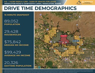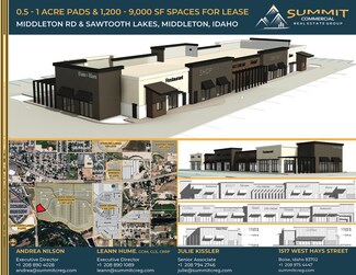 New 23,000 SF development project located in the River Walk Subdivision off Highway 44 - the main thoroughfare from Eagle & Star to Middleton and on to Interstate 84. Options include ground lease from half to a full acre, free-standing build to suit space from 3,000 to 9,000 SF, or multi-tenant in-line spaces ranging from 1,200 to 9,000 SF. Newly constructed spaces will be delivered in shell condition, tenant improvement allowance available for custom build-outs. The project is encompassed by other new commercial & residential developments in a soon to be undeserved market. Potential uses include retail, drive-through restaurant with patio, medical, office, professional service providers, and more. Surrounding retailers include Tractor Supply, Ridley’s, Family Dollar, Ace Hardware, O’Reilly Auto, Jack in the Box, Subway.