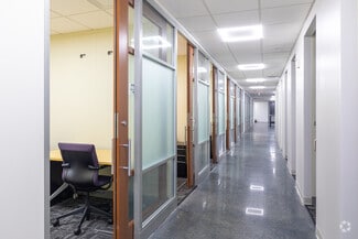 The building features a full-service café, a yoga and fitness studio, an indoor game recreation room, and emergency power backup. A central atrium with an enormous glass skylight welcomes natural light into the building’s interior, giving a unique atmosphere to indoor gardens, centrally located collaboration areas, and tenant space. Four-passenger elevators provide convenient accessibility and increase the ease of movement throughout the building. Office users experience fully carpeted office buildouts with large open floor plans to accommodate individual workstations, centralized private offices, and conference rooms.