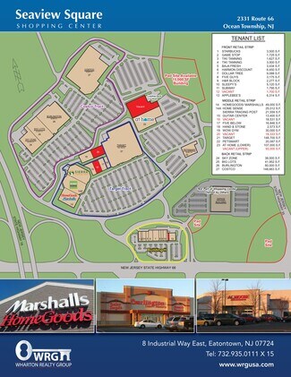 Seaview Square Shopping Center consists of approximately 1.1 million square feet of retail space located at the junction of the region's three major routes (18, 66 and 35 ) in Ocean Township, Monmouth County, New Jersey. Seaview Square Shopping Center enjoys a rich traffic count of 88,000 cars per day, and 155,000 people live within 5 miles of the center. In addition, there are 644,000 people who live in Monmouth County, and in the summer months, these numbers swell dramatically as it is located about 2.5 miles from the major resort area of Asbury Park and the Atlantic Ocean.