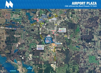 Airport Plaza is a 100% occupied grocery (ALDI) anchored shopping center located across from the Walmart Supercenter in Mount Pleasant, TX. All of the leases are NNN and the property contains a healthy layout of historically strong tenants. 6 of the 10 tenants have been at the property for over 10 years. 3 of the those tenants have been at the property for over 20 years which shows commitment to the property and the strength of the local retail market. The tenants that report sales reflect extremely high store sales. Situated on 4.36 acres of land, the property was constructed in 1984. At only $131/SF to purchase and low rental average of $9.56/SF, this property is a rare opportunity to acquire a grocery anchored shopping center with an extremely wide consumer reach. This property is located in the only major retail trade corridor in 56 miles which makes consumers heavily reliant on this shopping center. In a 56 mile radius, there is a population of over 650,000. It is located on Jefferson Ave, a high traffic area of East TX with over 25,000 vehicles per day. It’s also located not far from I-30 which has over 28,000 vehicles per day.