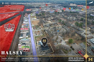 2315–2319 E Matthews Ave presents a fully leased neighborhood retail investment in one of Jonesboro’s most established commercial corridors. Positioned along the Matthews Medical Mile and minutes from Arkansas State University, the property benefits from consistent traffic, strong surrounding demographics, and long-term commercial stability. The multi-suite building is 100% occupied by a complementary mix of service-oriented tenants, providing immediate income and diversified rent streams. Flexible suite layouts support medical, professional office, and service retail uses, making the asset well-suited for long-term tenancy. Surrounded by major national retailers, regional shopping destinations, dense residential neighborhoods, and institutional demand drivers, the location offers durable fundamentals and steady visibility. A billboard easement is in place, with the billboard excluded from the sale. This offering represents a stabilized investment opportunity in a proven corridor with established tenancy and continued demand.