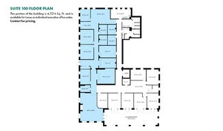 Suite #100 encompasses the entire first floor of the building, offering approximately 6,775± Sq. Ft. of professional office space and an additional 904± Sq. Ft. covered entryway. The suite features a functional layout with multiple private offices, a spacious waiting area, two restrooms, and dedicated conference rooms.
