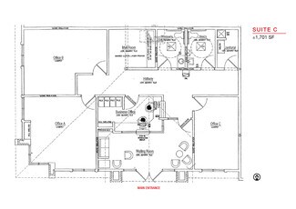3 offices, 2 restrooms, mail room, and waiting room