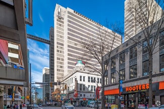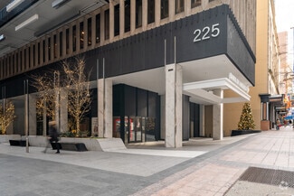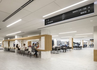 With over $25 million in renovations both inside and out, Peachtree Center’s biggest transformation in it’s nearly 60 year history is finally here and will change the way you experience Downtown. The modernized outdoor plaza incorporates a show-stopping, glass-enclosed staircase that connects directly to The Hub’s restaurants and retail shops below. Reflective pools and fountains with seating and landscaping are displayed throughout. The Plaza also features a suspended canopy of linear lighting elements, serving as an eye-catching signature feature that is particularly stunning at night. Equally as impressive as the development’s exterior transformation are the thoughtfully-designed and upgraded finishes throughout the interior of The Hub, including marble columns, counter-height bar seating, intentional gathering areas, upgraded light fixtures, and walkable skylights that breathe new life into the space.