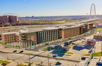 505 N. Riverfront Blvd. Dallas TX 75207. The five-story apartment building is part of a larger development plan on the forty-acre property that includes retail, hotels, and office space totaling 4 million square feet on Riverfront Boulevard near ContinentalAvenue.