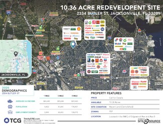 Trinity Commercial Group is proud to present a unique opportunity to acquire a 10.36-acre redevelopment site in the heart of Jacksonville. Located at the southwest quadrant of Edgewood Avenue and Avenue B, this property offers exceptional potential for a wide range of future uses. With its cleared, ready-to-build condition and strategic frontage along major thoroughfares, the site provides unmatched visibility and accessibility. Positioned within a dense residential and employment corridor, the property is well-suited for civic, institutional, or creative redevelopment initiatives that can serve as a catalyst for neighborhood growth and revitalization.