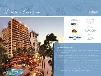 OUTRIGGER Resorts & Hotels is embarking on a significant new venture in Waikiki with a multi-million dollar revitalization project. This investment will transform the OUTRIGGER Waikiki Beach Resort into a sophisticated beachfront retreat deeply rooted in Hawaiian culture. The upscale enhancements will feature residential-style suites, a refreshed oceanfront restaurant, and elevated service standards throughout the property. Scheduled to begin in late 2025 and complete by late 2026, the renovation will also include contemporary upgrades to retail storefronts. This presents a rare opportunity to secure retail space on Kalakaua Avenue, offering unparalleled brand exposure and visibility to thousands of pedestrians, tourists, and high-net-worth individuals daily.