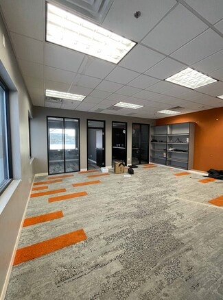FOR LEASE listing of warehouse space and office space combined. This space has 18-foot ceilings in the warehouse allowing for racking. The office is professional and ready for a business to move in. Ample parking in the rear of the building. The front of the building provides customer parking and visible signage potential.
