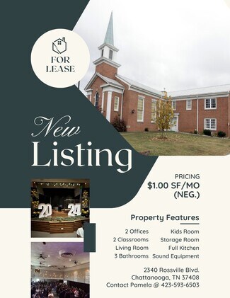 This offering presents an excellent opportunity for organizations seeking an established church facility, community or nonprofit space, or a flexible building suitable for conversion into office, educational, creative, or event-oriented uses. With its adaptable layout, visible location, and community-focused design, 2340 Rossville Blvd offers long-term potential for a variety of mission-driven or investment uses.