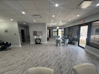 This rare 3,670 SF two-story commercial gem offers unparalleled visibility on the hightraffic Bee Ridge Road corridor, making it a premier destination for luxury service providers or savvy investors. Meticulously maintained and extensively renovated in 2023, the property boasts high-end finishes and a sophisticated, "plug-and-play" atmosphere. The ground floor features a modern, full-service salon layout—complete with all furniture, fixtures, and equipment (FF&E included)—while the upper level houses an elegant spa buildout featuring a pedicure station, private treatment rooms with integrated sinks, and professional executive offices.