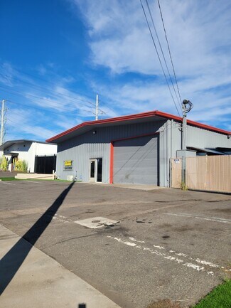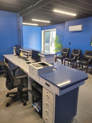 Industrial metal building spaces comes with two roll up door, office space, private restroom, private shower, and 6 front parking spaces.