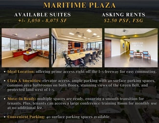 Offering flexible terms for premium office spaces in a Class A building, these move-in-ready suites range from 3,050 - 8,075 SF, catering to various business sizes and requirements. Tenants benefit from a strategic location off I-5, comprehensive amenities, and no additional cost for conference room usage, making it an ideal choice for businesses seeking quality and convenience.