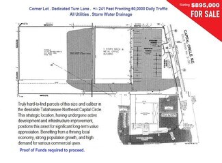 Highly visible property located in affluent northeast quadrant of Leon County Florida. Situated just one and one-quarter miles south of interstate 10 and four miles northeast of downtown Tallahassee. The Center offers incredible visibility on one of the best retail corridors in Tallahassee, consisting of six store front units, 1,500 +/- SF each and 141 feet of frontage, facing the six-lane Capital Circle N.E. with over 60,000 daily traffic. Located between large national and regional tenants including Lowe's, Home Depot, and Publix. The entire building can be used for a wide variety of single credit tenants and businesses with 1.08 flat acres, all utilities, storm water drainage, and grade-level roll up doors at the rear of the property for easy deliveries and ample parking. Property is adjacent to a retail development plaza, near a 600 acre residential community, and HCA Florida Capital Hospital. Pylon Sign.