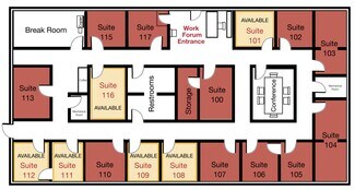 • Office Suites and Work Forum Suites available include common conference room, break room, and restrooms