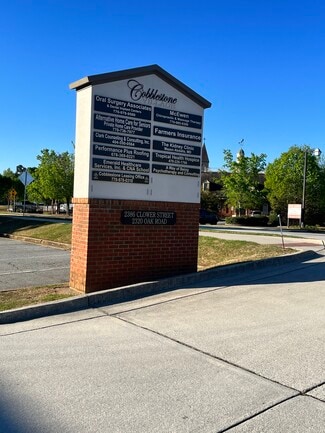 The Cobblestone Office Park is located in the heart of Snellville in the Towne Center Area, adjacent to Snellville City Hall and the Snellville Police Station. We have convenient access from Highway 78 and Highway 124. This 5 building complex is owned and managed by the DDA-Snellville. We have done extensive exterior upgrades to the entire complex. We offer small executive suites and mid-size suites with two conference Rooms available for tenant use. We have a large 2nd floor 10 person conference room and a smaller 1st floor six person conference room. "The Grove" is a new, upcoming development happening right across the street from Cobblestone! Shops, restaurants, other commercial rentals, and apartments are planned. Some of our suites can be dog-friendly.