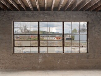 The 7,750 SF interior warehouse space features three 8' garage doors at dock height, 10'–18' clear heights, large factory windows, and a private restroom. Space is not heated or cooled and is suitable for storage, distribution, or light industrial use. Building is on City of Asheville water and Buncombe County sewer.