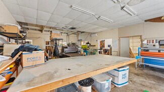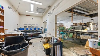 The large shop space includes a shop door, multiple air compressors, two mini-split systems, and a full bathroom with tub/shower. Business equipment valued at approximately $100,000 - including embroidery and screen-printing machines - is included in the sale and conveyed with the property, with that value not included in the current list price. The business is not currently operating due to personal reasons, creating a clean transition for the next owner.