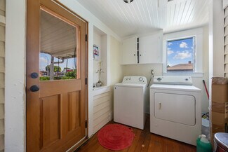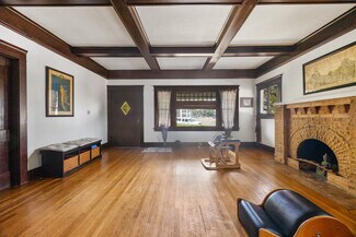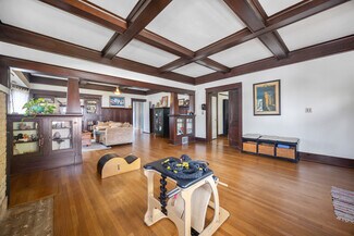 • Beautiful box beamed ceilings, stunning fireplace, fantastic built-in in the den/dining room area, and the original hardwood floors