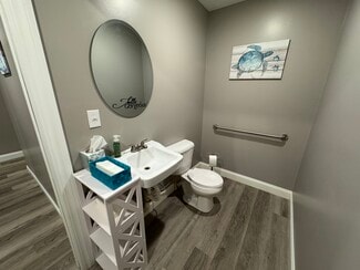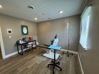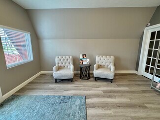 PRICE REDUCED! Prime Commercial Property in Growing Business District! This distinctive A-frame building offers exceptional visibility and versatility in a high-traffic location. Currently configured as a medical office, the layout is ideal for salon suites, studio, wellness practices, or professional offices. Features include a welcoming lobby, reception office with window, 6 private rooms/offices, kitchenette, public & private restrooms, and ADA-compliant handicap access. Central air, gas heat, standing seam metal roof, and modern updates throughout- paint, flooring, lighting, and drywall. Includes 10 parking spaces (5 front & 5 rear) plus a side area perfect for a future drive-through. Owner retiring- an excellent opportunity to secure road-front commercial real estate in a developing area.