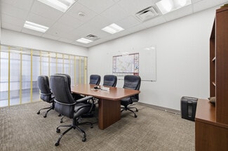 The warehouse is equipped with three dock-high doors, each with levelers, openers, and full dock packages, supporting seamless loading and unloading. Inside, the facility includes multiple modern offices with abundant natural light, a break room, two restrooms, a conference room, and a storm shelter/storage room, creating a balanced environment for both administrative and industrial needs.
