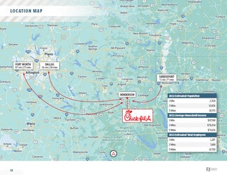 SRS National Net Lease Group is pleased to offer the opportunity to acquire the fee simple interest (land & building ownership) in an absolute NNN leased, drive-thru equipped, Chick-fil-A investment property located in Henderson, Texas. The tenant, Chick-fil-A, Inc recently signed a brand new 15 year lease with 13 (5-year) options to extend, demonstrating their commitment to the site. The lease features 10% rental increases every 5 years throughout the initial term and at the beginning of each option period, steadily growing NOI and hedging against inflation. The lease is absolute NNN with zero landlord responsibilities making it an ideal, management free investment opportunity for a passive investor.