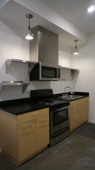 Efficient Micro-Living Design: 2418 Ballard features 42 thoughtfully designed micro units averaging 196 square feet, maximizing functionality through smart layouts and efficient storage; units feature floor-to-ceiling windows, efficient storage design, LVP flooring, and kitchenettes with microwave and mini fridge. *Features vary by unit.