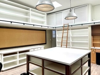 Amazing location! Directly across from the Brentwood Country Mart. Bright workshop with skylights and Air Conditioning. Tons of storage with a border of workstations and a great center work table. Covered parking spaces are available for lease across the street.