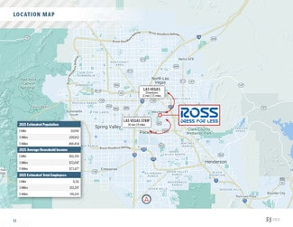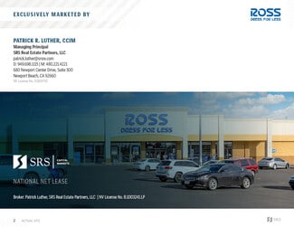 SRS Real Estate Partners, LLC is pleased to offer the opportunity to acquire the fee simple interest (land & building ownership) in a NN leased, Ross Dress for Less investment property located in Las Vegas, Nevada. The tenant, Ross, has operated at this location for over 40 years and has 3 years of remaining term with 3 (5-year) options to extend, demonstrating their commitment to the site. The lease features 10% rental increases at the beginning of each option period, steadily growing NOI and hedging against inflation. The lease is NN with limited landlord responsibilities making it an ideal, low management investment opportunity for a passive investor. Ross performs well at this location with a healthy rent-to-sales ratio of about 4.3%. Additionally, the building’s roof was replaced in August 2024 (membrane has a 20-year manufactured warranty) and approximately 64% of the buildings cooling capacity was replaced in 2025, further demonstrating Ross’ investment in this location.