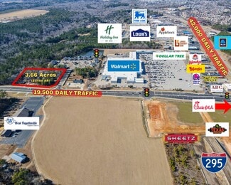 The property offers 372 feet of frontage on Gillis Hill Road and consists of two parcels totaling 3.66 acres, allowing flexibility for a wide range of commercial users. Immediate access to I-295 and Highway 401 ensures excellent regional connectivity and a convenient commute to Fort Liberty, located less than one mile away.