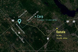 Located just 3 minutes from Highway 417 and 14 minutes from Kanata, this expansive 161-acre parcel on Marshwood Rd in Carp offers a rare blend of seclusion, natural character, and long-term potential. The property features mature forest, established UTV trails, marshland, and open clearings, making it well-suited for the development of a private country residence, recreational use, and hunting. An old log home on site now gutted presents an opportunity to rebuild as a hunt camp or off-grid retreat. Zoned RU (Rural Countryside), the land supports a variety of rural uses and is surrounded by the rugged terrain and ecological richness of the Carp Hills, just minutes from trails, local amenities, and the charm of Carp Village. This is a rare opportunity to secure large-scale rural land with excellent access, privacy, and flexibility in one of Ottawa's most naturally beautiful corridors. Brochure link can be found under Property Summary.