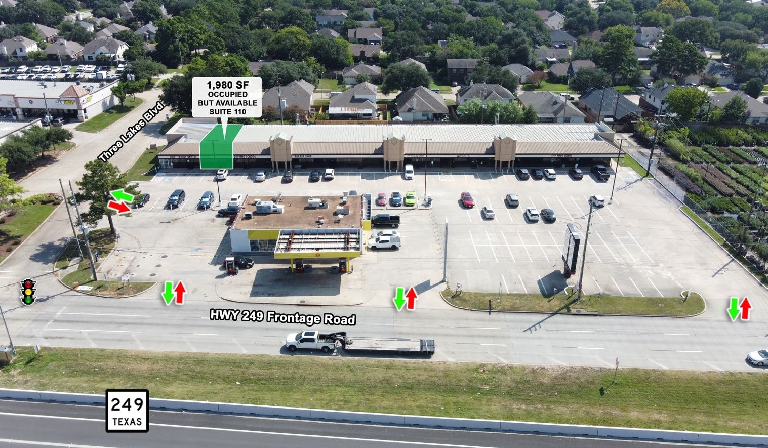 Positioned at the signalized intersection of SH 249 and Three Lakes Boulevard, Tower Plaza offers a prime retail opportunity in one of Tomball’s most accessible and visible corridors. The center benefits from large pylon signage and direct access from both SH 249 and Three Lakes Blvd, enhancing visibility and ease of entry for customers. Its location just south of Grand Parkway (TX-99) places it within reach of major regional traffic flows and growing residential communities.
