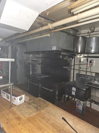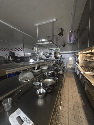 Office, bathroom, prep kitchen, freezer, refrigeration units, locker room, liquor storage on lower level.