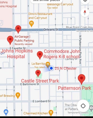 COMMODORE JOHN RODGERS K-8 SCHOOL ACROSS THE STREET!!!!!!! LITERALLY CANNOT GET CLOSER!!! FULL SET OF FULLY APPROVED BUILDOUT DRAWINGS AVAILABLE! THE SPACE IS READY TO GO IMMEDIATELY - TWO BLOCKS FROM The JOHNS HOPKINS MAIN HOSPITAL - ONE block from PATTERSON PARK - extremely safe, beautiful area - needless to say, VERY high foot traffic