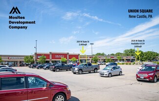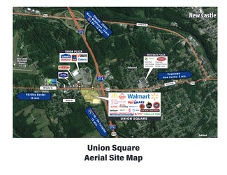 Union Square Shopping Center is located just 30 minutes from Pittsburgh International Airport, 5 minutes west of New Castle on the corner of I-376 Exit 13 and Route 224 (West State Street). Anchored by Walmart Supercenter and filled with quality retail shops and desirable restaurants.