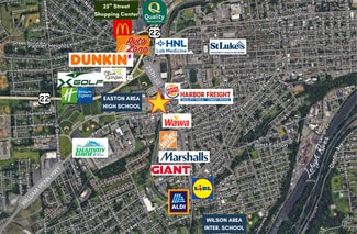 Incredible freestanding retail location available for lease. Suite is 3,750 SF and features a BONUS 1,800 finished retail mezzanine. See pics and videos. Property features high visibility and dedicated surface parking. Located at the signalized intersection of 25th Street and Wm. Penn Highway in Easton, PA. Located just minutes from Rt. 22 and I-78!