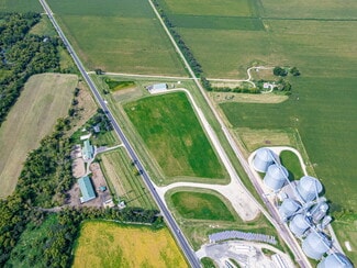 24 acres zoned I-1, industrial on a state highway in unincorporated McHenry County. 1600 sq. ft. office building plus 6300 sq. ft. metal building with concrete floor and 12' x 14' overhead doors. Natural gas and 3 Phase electric. 2/3 acre gravel outdoor storage area. Level ground with Storm Water permit issued by McHenry County to allow for more development. Concrete entrance designed for semi-truck traffic. 4 miles to Rt. 14 corridor in Harvard and 16 miles to I-90 / I-39. Over 900' rail spur to the Chicago Chemung Railroad, 2 miles from the Union Pacific junction.