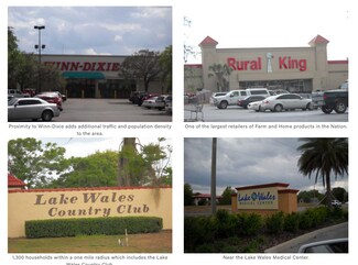 * Join Goin' Postal (shipping store) and Vida Health and Wellness at this Center * Amazing visibility in Lake Wales and near Walmart, McDonalds, Rural King, Tractor Supply, Wendy's, Taco Bell on State Rd 60. * Average Daily Traffic 26,000 * FDOT conducting traffic studies to see if traffic light is warranted, which could lead to center becoming a signalized corner * 1000's of new homes are being built nearby from all the major home builders (Lennar, KB Homes, DR Horton, etc.), population expected to triple in Lake Wales in the coming years.