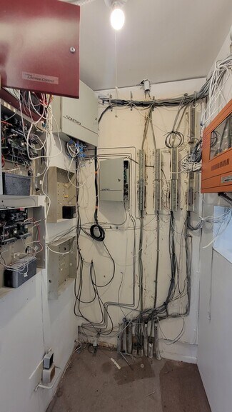 Nice Commercial Office building and Warehouse. Fresh paint throughout interior. Features main lobby area and reception area/office. 8 Offices, 6 storage rooms of various sizes and numerous storage closets. Large central conference room with cabinets and hidden sink. Kitchen features nice cabinets with laminate countertops with electric stove and sink. 3 bathrooms with sinks and toilets. Dedicated server/storage room with mini-split for climate control (attached to the back of office building outside access). New roof. Owned solar panels provide power to both buildings. Detached shed in the rear of property. Agent/Owner