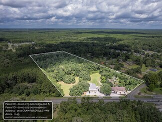 An exceptional 11.49-acre commercially zoned property in Crawfordville, Florida, offering unmatched flexibility for new development. The property includes 9,150 SF of existing retail buildings plus a single-family home, providing immediate income while you plan future expansion. With ample acreage, strong frontage on a major highway(currently being widened and expanded), and flexible commercial zoning, the site is ideally suited for retail centers, mixed-use projects, or large-scale redevelopment.