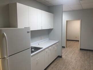 Warehouse has 14 foot ceiling and 2 ten foot roll-up doors. New flooring & recently painted.