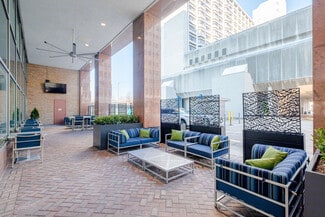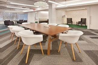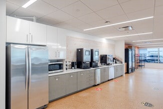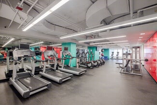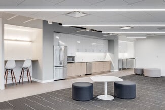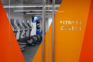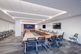 The building also features tenant-only conference facilities, including a large private conference room, breakout rooms, and open meeting areas with direct access to a catering kitchen and the amenity center. For wellness and fitness, tenants can enjoy a dedicated fitness center equipped with cardio machines, free weights, showers, locker rooms, and towel service.