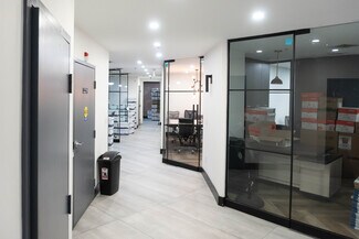 The building comprises approximately 4,479 square feet of space with an additional mezzanine area of about 3,900 square feet. Interior improvements include multiple private offices, two boardrooms, and open workstations. The property is serviced with 600-volt power and offers ample on-site parking. Contact brokers for more information.