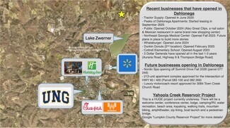 Welcome to Dahlonega – the picturesque, Hallmark-style town that just keeps growing! With the University of North Georgia (part of the fastest-growing university system in Georgia), a flourishing wine industry (dubbed the Napa Valley of the South), a booming destination wedding market, deep gold rush nostalgia, and abundant outdoor recreation, people are pouring in, spending big and even putting down roots. And with that growth comes demand. Dahlonega needs more goods, services, and experiences to support both the local community and a constant influx of tourists. This property is perfectly positioned to fill those gaps and bring your vision to life | PRIME LOCATION & SITE FEATURES | 350 feet of frontage on US Hwy 19/60 (high traffic visibility) – minutes from Historic Dahlonega Square – surrounded by high-density housing – right down the road from the county’s est. $70MM Lake Zwerner/Yahoola Creek Reservoir Master Plan (set to include: amphitheater, zip-lining, hiking & biking trails, beach area, RV camping) | PROPERTY DETAILS | 7.11 acres of gently rolling terrain (ideal for development or expansion) – main building: 2,830 sq ft with a wide open “meeting hall” layout – outside access basement with potential for a manager’s apartment, storage, or rental space (building is structurally sound, needs some TLC) – storage building: 40 ft x 19 ft with partial enclosure & 12'W x 9'H roll-up door | ZONING & DEVELOPMENT POTENTIAL | character area – Community Village Center (flexible uses including commercial, retail, and residential) – County parcel with option to annex into the City for access to City water & sewer – surrounded by City-zoned commercial (makes future development more adaptable) – additional acreage available to the south for larger-scale visions.