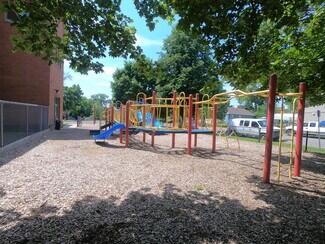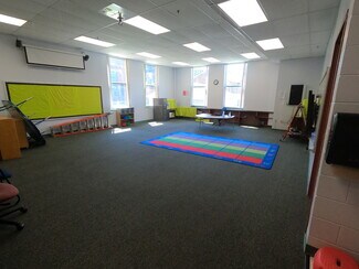 Education space available for lease or sale • Lease Rate: Negotiable • Sale Price: Negotiable • 3 floors, 14 classrooms, elevator, gym/cafeteria, library, computer lab, kitchen, offices, and playground