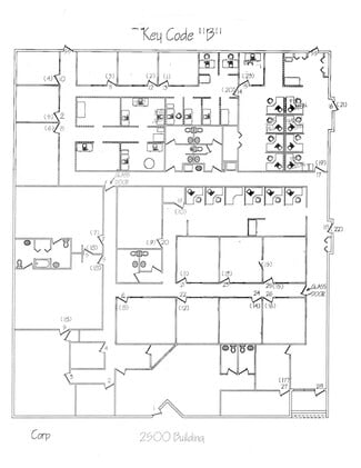Available for Lease – 4 office spaces (can be combined). [Download PDF Floor Plan for best visualization]. Terrific location with easy driving access to Tampa, Clearwater and St. Pete. 2510 (Building 9) consists of 12,500 total sf mol and includes a mix of front office/reception space, private office space, and a large warehouse (AC) in the back (with loading dock). 2620 (Building 3) consists of open office space with a raised center platform. Ideal for an open sales floor / call center (15,000 sf mol). 2640 (Building 4) can be combined with building 3 and consists of a mix of open desk space, a large training room and kitchen (15,000 sf mol).
