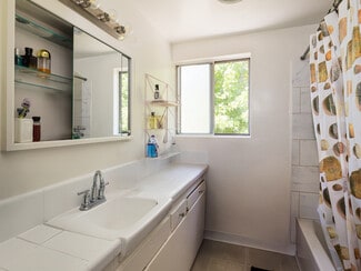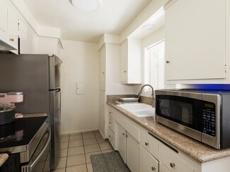 • This building features 16 townhouse-style units, offering a mix of two-bedroom, two-bath and two-bedroom, one-bath layouts.