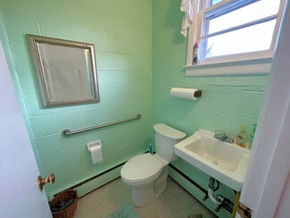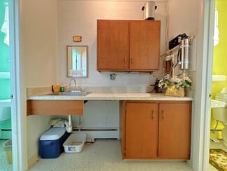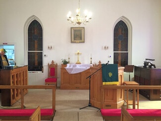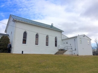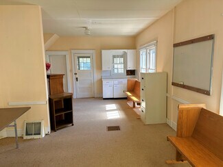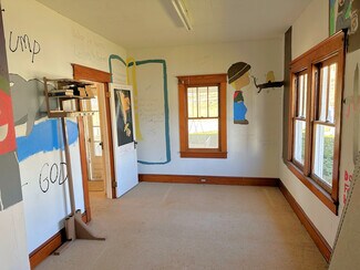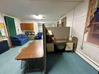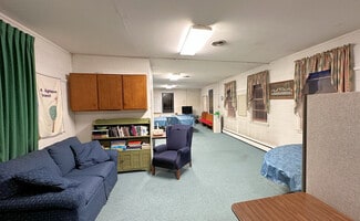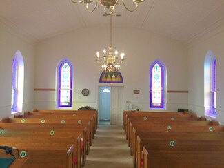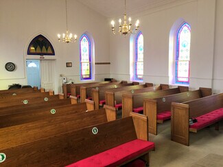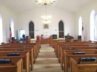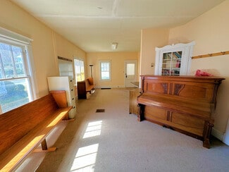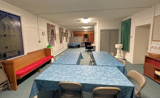 The building that holds the sanctuary and hall is one level, no basement. The sanctuary is simple, well-kept and comfortable, offering pew seating for under 100. The piano and organ convey with the sale. The hall portion of the building (located behind the sanctuary with one access door) includes a multipurpose space currently configured with tables for banquet seating, office space, and a casual seating area. At the north end of the hall are two restrooms and a "wet bar" kitchen. The oil-fired boiler is located in the hall, and there are A/C components on the exterior upper level of the building. There are three access doors -- two for the hall, and one for the sanctuary.