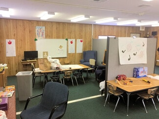 The modular (trailer), formerly used as classrooms and meeting space, is spacious and set up for A/C, but does not have restroom facilities. The modular provides an ideal opportunity for additional worship, ministry, and meeting space. Wheelchair accessible. The contents convey with the sale.