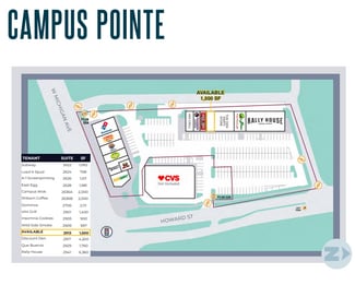 The property is part of Campus Pointe Mall, a vibrant retail center surrounded by dense student housing and neighborhood apartments. Tenants enjoy strong foot traffic, excellent visibility, and ample shared parking