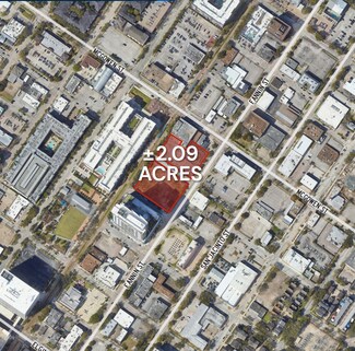 Blocks are 2627 Main and 2701 Main Located in a QOZ. On the light Rail line. Across the street from the Midtown Park and a 500 car parking garage. Located in a "no parking required" ordinance. It would be possible to abandon the street between the two parcels. Located in the heart of Midtown with quick access to popular eateries, 30+ lively bars, and Downtown Houston. • The site is conveniently situated near Houston’s largest employment centers: Downtown, the Texas Medical Center, and the Houston Ship Channel. • Located in Midtown, Houston’s top live, work, play submarket. Midtown is one of Houston’s most walkable neighborhoods and borders the fast-growing neighborhoods of EADO and Montrose, both of which have a growing affluent population and increasingly popular entertainment districts. • No zoning regulations allow for flexible development options across all product types with no pre-determined use.